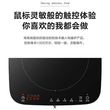 美的(Midea)电磁炉 多功能家用智能触控2200W大火力拨动控制微晶面板恒匀火 C22-S301