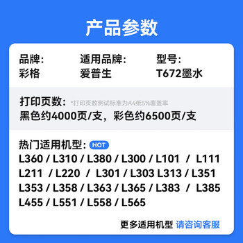 彩格T672墨水4色套装T6721-T6724打印机墨水适用爱普生L310 L313 L211 L360 L380 L455 L485 L565 L605打印机墨水