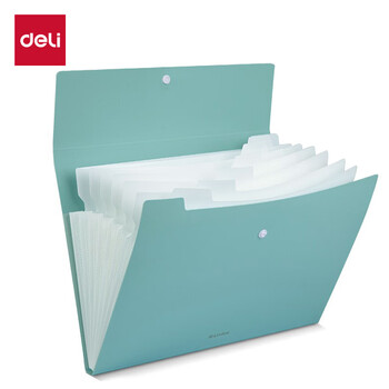 品牌:得力(deli) 颜色:薄荷绿 规格:A4 材质:PP 数量:单只装 特性:1. 乐素主题风格,塑面LOGO烫金工艺,简约时尚 2. 8格风琴包,采用新型锁扣结构,结实耐用 3. 内置标签索引,分类使用,查找更便捷