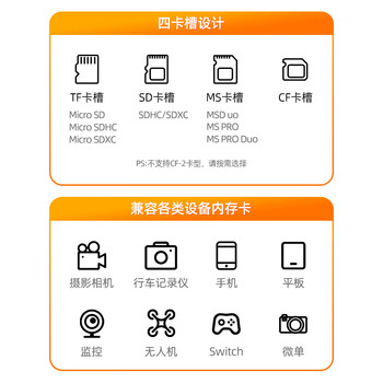 山泽USB3.0高速读卡器多功能四合一 支持SD/TF/CF/MS型相机行车记录仪监控内存卡手机储存卡CRA04B