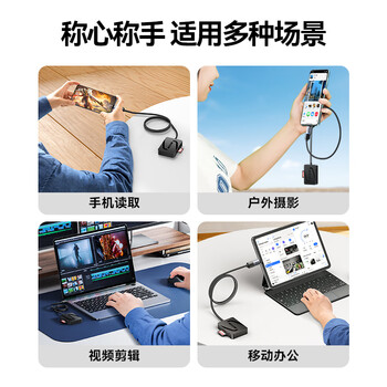 山泽 USB3.2Gen1高速读卡器 多功能四合一读卡器 支持SD/TF/CF/MS型相机记录仪监控手机平板储存卡1m CRA04B*1