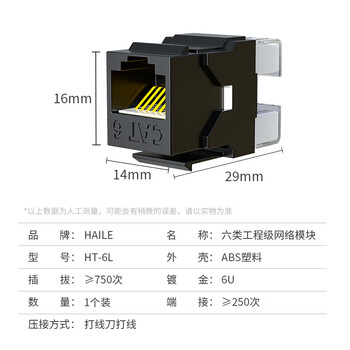 HAILE网络模块六类网线6类6u镀金工程级CAT6机柜机架面板模块HT-6L