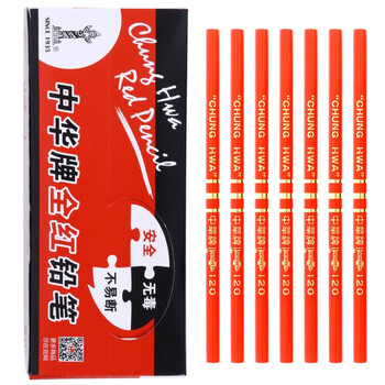 中华【热门商品】中华 120 全红铅笔设计绘图施工放线木工记号特种铅笔圆杆50支/盒