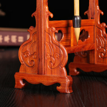 漢墨 祥云龙头红木毛笔架 笔挂实木多功能学生8针毛笔挂 文房四宝毛笔书法用毛笔架子