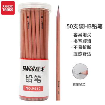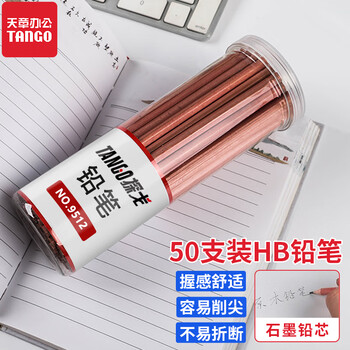 天章(TANGO)HB铅笔50支/筒学生儿童素描绘图原木色六角笔杆书写字原木笔杆绘画练字必备