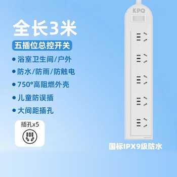 KPQ零触KPQ不触电插座IPX9级防水过载短路保护插排户外防雨排插厨房浴室防潮儿童防触电DF05全长3米