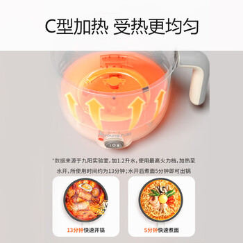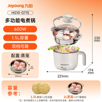 九阳(Joyoung)多功能锅电热锅小煮锅电蒸锅火锅锅学生宿舍电煮锅 1-2人1.5L泡面电火锅 HG10-G71S