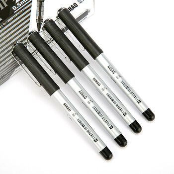 爱好(AIHAO)签字笔0.5黑色直液式走珠笔子弹头办公用水性笔大容量直液笔 AH2000