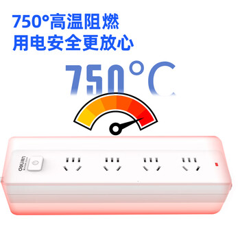 得力(deli)3C认证国标安全插座 插排/插线板/接线板/排插/拖线板 总控开关 儿童保护门 4组合孔2米 18253(02)