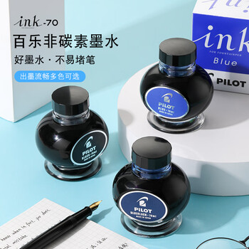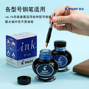 百乐(PILOT)非碳素墨水不堵笔 钢笔用墨水瓶装70ml INK-70-BB原装进口蓝黑色