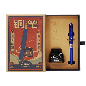 百乐(PILOT)78G钢笔复古礼盒套装学生书法练字笔生日礼物成人高档商务签字笔高颜值 蓝色M尖
