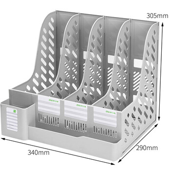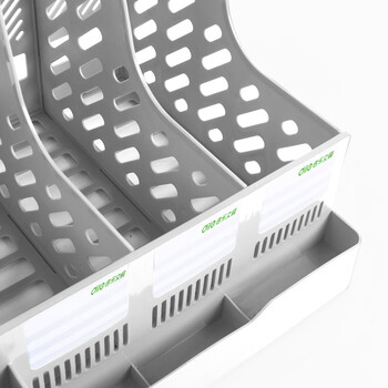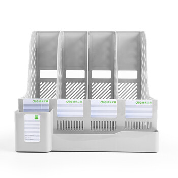 递乐 加厚多功能笔筒四联文件框/文件栏/组合文件架/资料架/文件筐 四栏带收纳盒 1899灰色