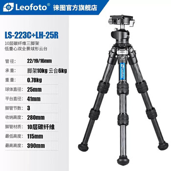 徕图三脚架 便携迷你桌面球形摄影爬楼三脚架云台套装 LS-223C+LH-25R(脚架云台套装)