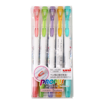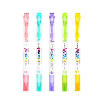 uni三菱淡色双头荧光标记笔学生用 5色套装PUS-102T白杆系列