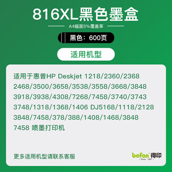 得印816墨盒 黑色 适用惠普HP 1218 F2288 2360 2368 D2468 3358 3658 3668 4308 5168 7268喷墨打印机