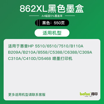 得印862墨盒CB316ZZ 黑色 适用惠普5510墨盒6510/7510/B110A/B210A/C5388/C310A/C410D喷墨打印机 墨水