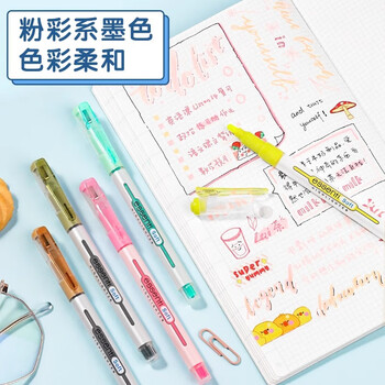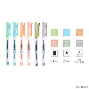 【开学必备】慕那美(monami)柔和色荧光笔记号笔学生标记划重点 斜头1-4mm 6色套装06017-6