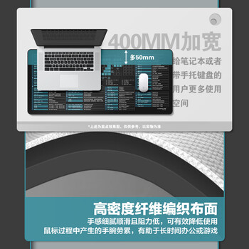 飞遁LESAILES Win10快捷键鼠标垫大全五笔字根超大号锁边加厚办公电脑键盘书桌垫黑色900*400*3mm