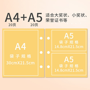 金得利A4/A5资料册120张奖状收集册文件收纳册孕妇产检报告活页收纳册插页文件夹插页袋乐谱夹黑CF540