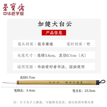 【全网低价】荣宝斋 毛笔 兼毫白云书法练字大中小楷 文房四宝国画字帖临摹成人初学者学生入门 加健白云-大