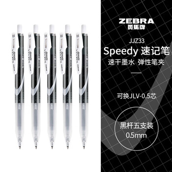 斑马牌(ZEBRA)中性墨水中性笔 Speedy速记学霸笔 0.5mm子弹头大容量 JJZ33 黑杆黑色 5支装
