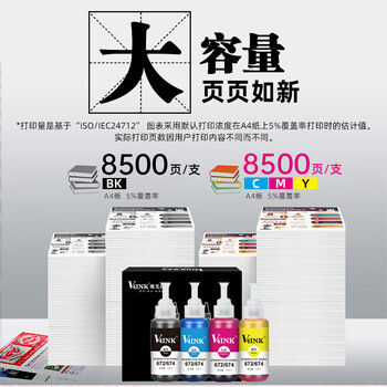 V4INK 672墨水 打印机墨水黑色适用爱普生L360墨水L310 L380 L1300 L565 L383 L455 L485 L313 L351墨水100ml
