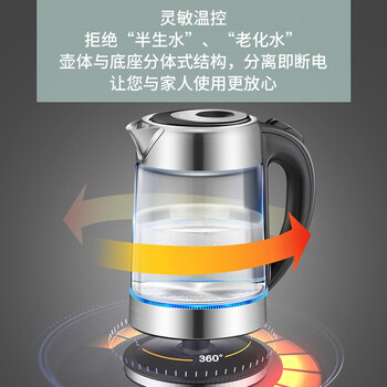 金灶(KAMJ VE).茶壶 热水壶 1.7L水壶 茶壶高硼硅透明蓝光玻璃水壶 T-558
