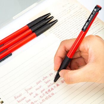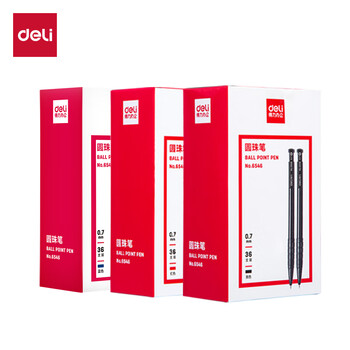 得力(deli)0.7mm红色按动圆珠笔中油笔 软胶握手原子笔36支/盒YZB-6546