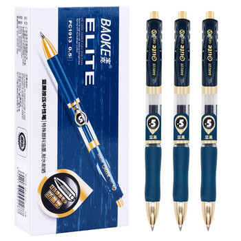 宝克(BAOKE)PC1913 0.5mm按动蓝黑色中性笔子弹头水笔签名笔处方笔 12支/盒
