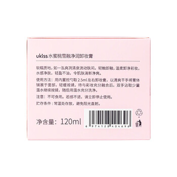悠珂思(ukiss)水蜜桃卸妆膏120ml 温和面部眼唇周边养肤清洁颜油 新年礼物