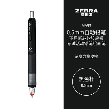 斑马牌(ZEBRA)0.5mm不易断芯自动铅笔 软胶笔握活动铅笔绘画笔 易握爱芯自动铅笔 MA93 黑色杆