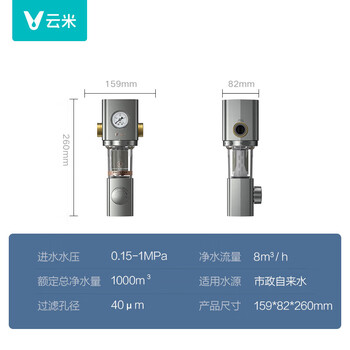 云米(VIOMI)前置过滤器自营家用自来水过滤器冲洗免换滤芯8T/h大流量中央管道自来水过滤 前置过滤器VF4-A