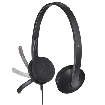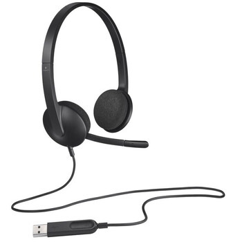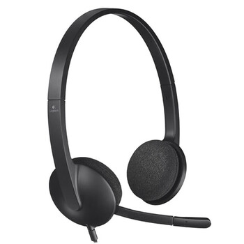 罗技(Logitech)USB接口耳麦 头戴式耳机 带麦克风话筒 电脑办公教育培训学习 H340