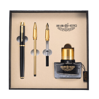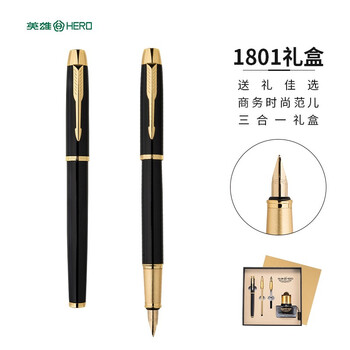 英雄(HERO) 钢笔 1801黑丽雅金属杆铱金钢笔/特细铱金钢笔/宝珠笔礼品钢笔签字套装