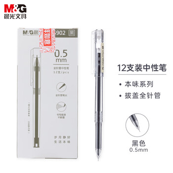 晨光(M&G)AGPB5902本味全针管拔盖中性笔水笔签字笔12支0.5mm黑色