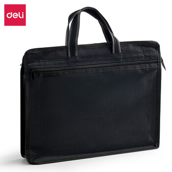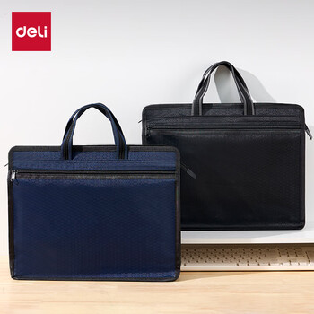 得力(deli)双层公文包事务包/拉链袋手提袋商务会议男电脑包便携商务文件资料收纳包文件袋 新老款随机黑色