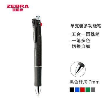 斑马牌(ZEBRA)五合一多色笔(0.7mm四色圆珠笔+0.5mm自动铅笔)黑蓝红绿学生商务办公签字笔B4SA2 黑色杆