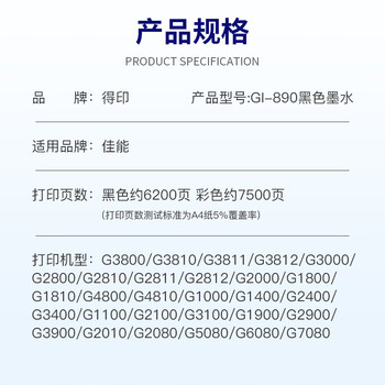 得印GI890墨水黑色适用佳能CanonG2810 G1800 G1810 G2800 G3800 G3810 G4800 G4810 G3812打印机墨水GI-890墨水