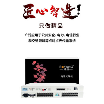 博扬 综合业务电话光端机 32路电话+4路千兆以太网隔离 单纤60km 机架式 1对价BY-32P4GV-60km*1 合格证*1 保修卡*1