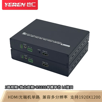 也仁 HDMI视频光端机光纤延长器1路HDMI+独立音频+RS232单模单芯LC接口HDMI光纤传输器 YRHP110