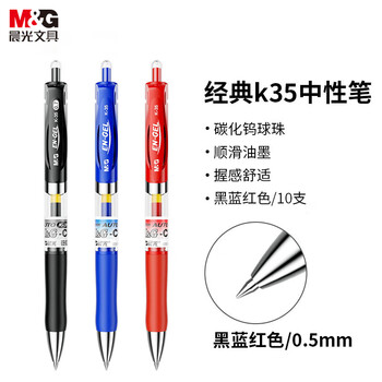 晨光(M&G)文具K35/0.5mm中性笔混色装 按动笔 碳素笔 水笔套装(红笔*1/蓝笔*2/黑笔*7)AGPK3513
