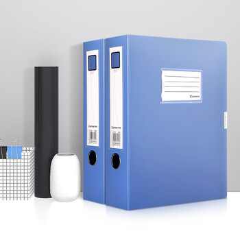 齐心(COMIX)10个装 板材厚1.0mm 75mm加厚粘扣档案盒 A4文件盒 耐用型资料盒 蓝色 办公文具