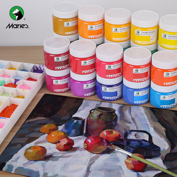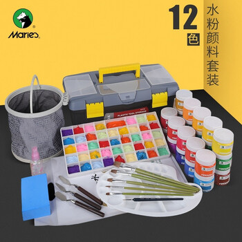 马利(Marie's)水粉颜料套装12色100ml瓶装水粉笔刮刀调色盘吸水海绵喷壶水桶水粉纸勾线笔调色盒工具箱套装