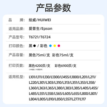 绘威T6722墨水 适用爱普生L360 L130 L380 L1300 310 383 351 313 565 301 363 epson墨仓式打印机T672墨水 蓝色
