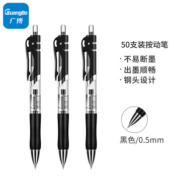 广博(GuangBo)中性笔签字笔按动笔 0.5mm黑色子弹头水笔黑笔 文具办公用品学生用笔 50支/盒 ZX9K35D-50