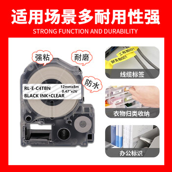 E代标签色带适用爱普生12mm透明底黑字标签纸LW-K400标签机600P 1000P C410 Z700 Z900锦宫打印机
