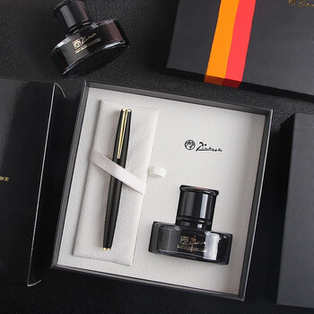 毕加索(pimio)钢笔礼盒 签字笔墨水套装 生日礼物男成人学生练字商务办公送礼T722亮黑金夹
