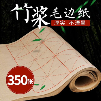 六品堂宣纸书法练习纸写毛笔字米字格毛边纸批发加厚手工初学者专用【10*12格】350张送毛毡