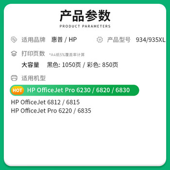 才进适用惠普934XL墨盒黑彩色大容量OfficeJet 6230 6820 6830 6812 6815 6220 6835原装6810打印机墨水935XL