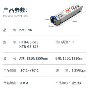 netLINK sfp千兆光模块 1.25G单模单纤A端+B端 20km lc 适用国产设备 一对 HTB-GE-S13/S15